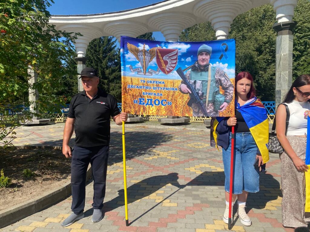 Особливо зворушливим став момент, коли Ігор Дідик — військовий із Хмільника, який пройшов полон і повернувся додому виконав важливу місію. Цей мужній чоловік із сумними очима підіймав біло-чорний прапор — символ віри й болю. Білий колір — надія, чистота й правда, чорний — темрява невідомості, що з’їдає серця тих, хто чекає.