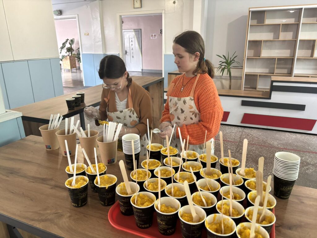 У вівторок шкільні коридори прикрасили барвисті фотозони, а на учнів чекав приємний сюрприз — запашна гарбузова каша.