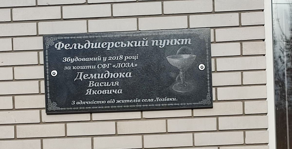 У селі Лозівка урочисто відкрили пам’ятну дошку меценату Василю Яковичу Демидюку, завдяки якому в громаді з’явився сучасний фельдшерський пункт. Подія відбулася 25 листопада і зібрала представників місцевої влади, медичних установ та жителів села.