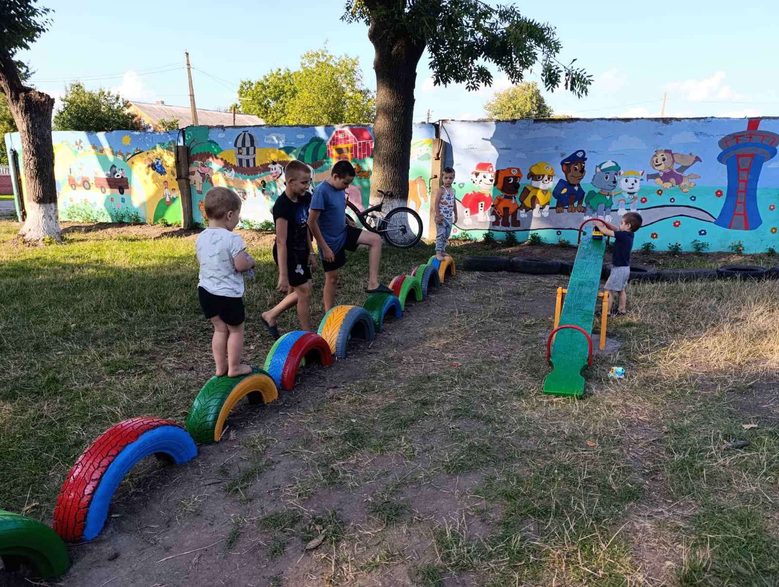 Загалом у селі розмалювали сім бетонних плит, встановили смугу перешкод із шин та додаткову гойдалку. До справи долучилися і жителі громади, а староста села Тетяна Носова придбала фарбу для оновлення обладнання майданчика.