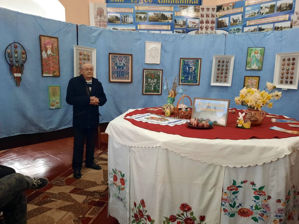 Дмитро Власійчук, член Національної спілки художників України та Національної спілки майстрів народного мистецтва, на відкритті експозиції поділився знаннями про традиції Великодня, історію писанкарства та символіку святкових атрибутів. Він також детальніше розповів про представлені роботи.