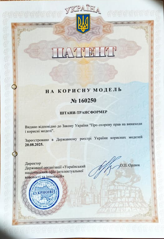 Волонтери благодійного фонду «Паросток Добра» з Козятина продовжують дивувати своїми розробками. У вересні вони отримали вже четвертий патент на корисну модель — цього разу на «Штани військові». Документ був офіційно зареєстрований у Державному реєстрі України 10 вересня 2025 року, — повідомив керівник фонду Сергій Сиваківський.