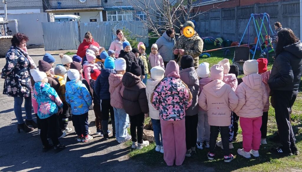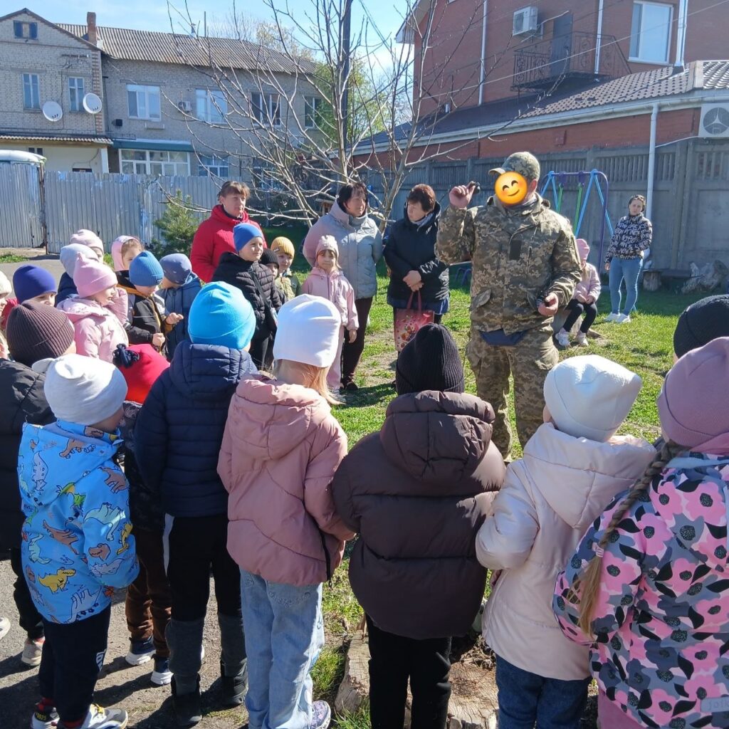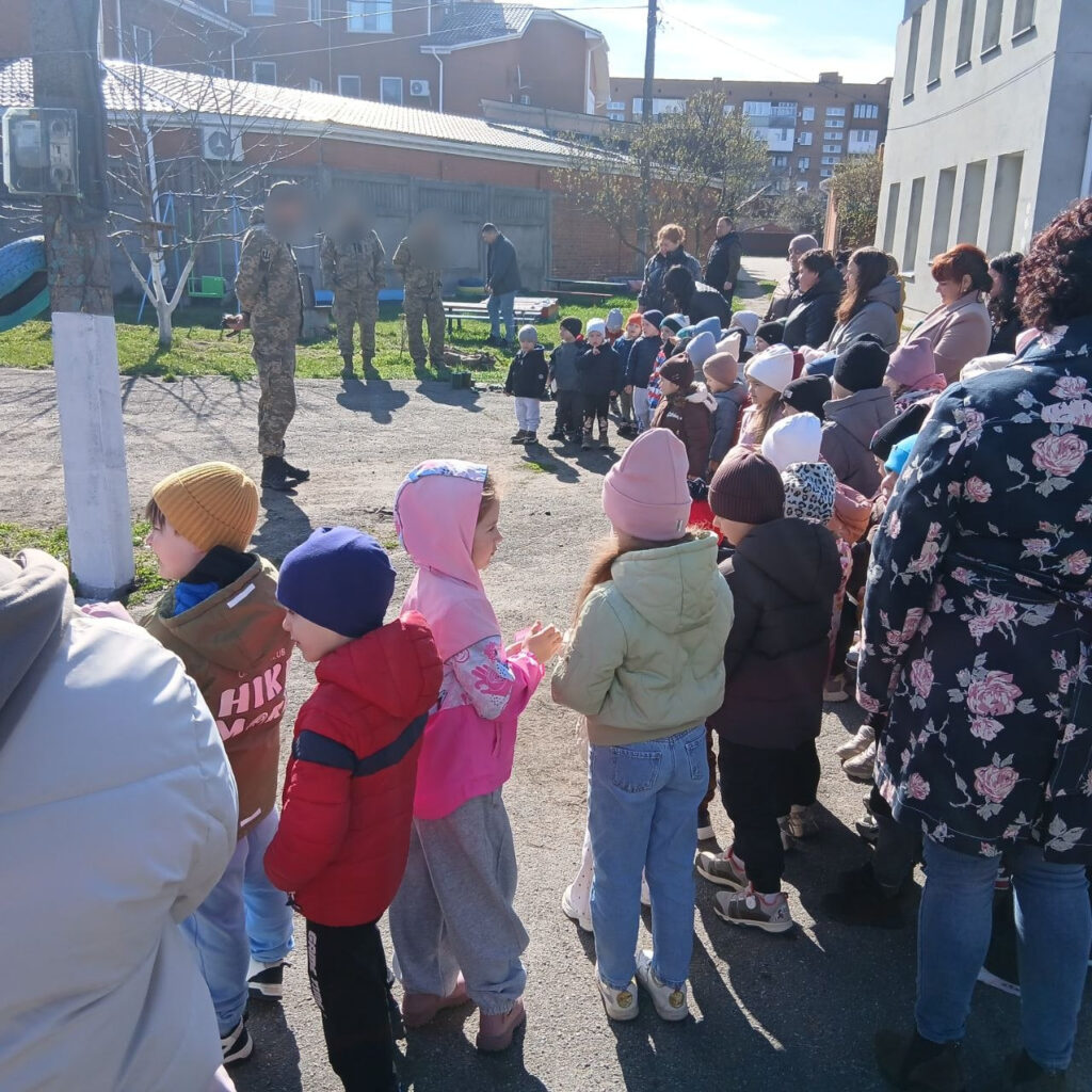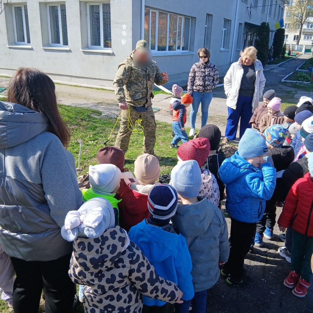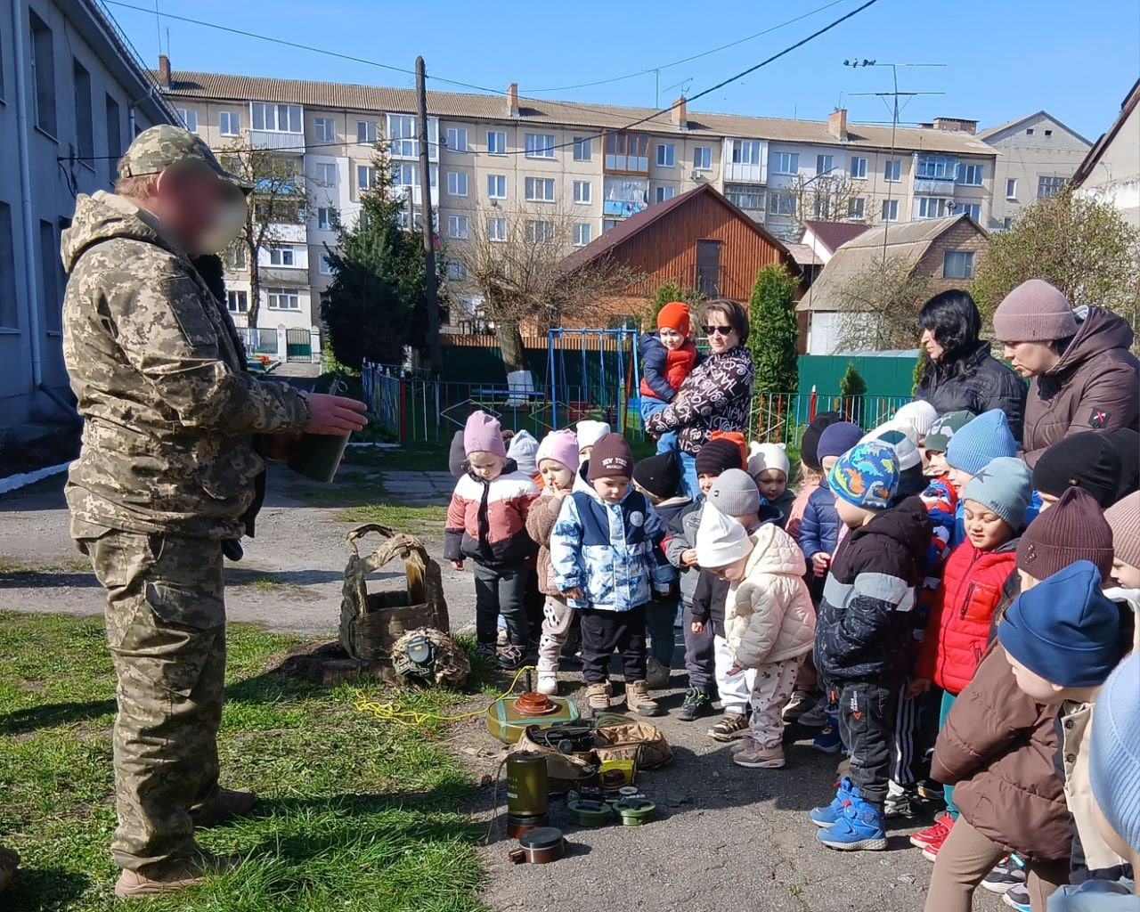До дитсадка завітали військовослужбовці, які у доступній формі розповіли малечі про небезпечні предмети та правила поведінки у разі їх виявлення. Діти уважно слухали та активно долучалися до спілкування, адже для них гості у формі стали справжніми героями.