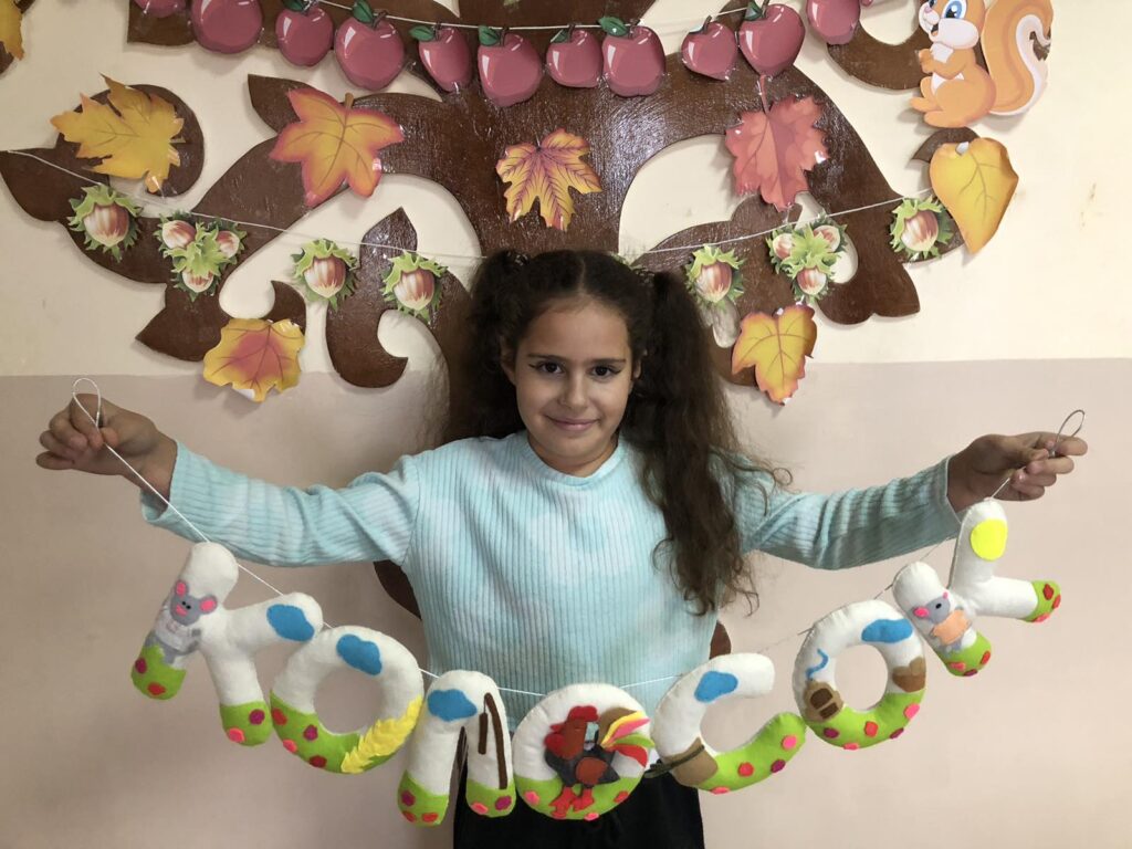 Мер’ям Бшарат створила яскраву фетрову гірлянду за мотивами казки «Колосок», продемонструвавши навички крою та шиття.