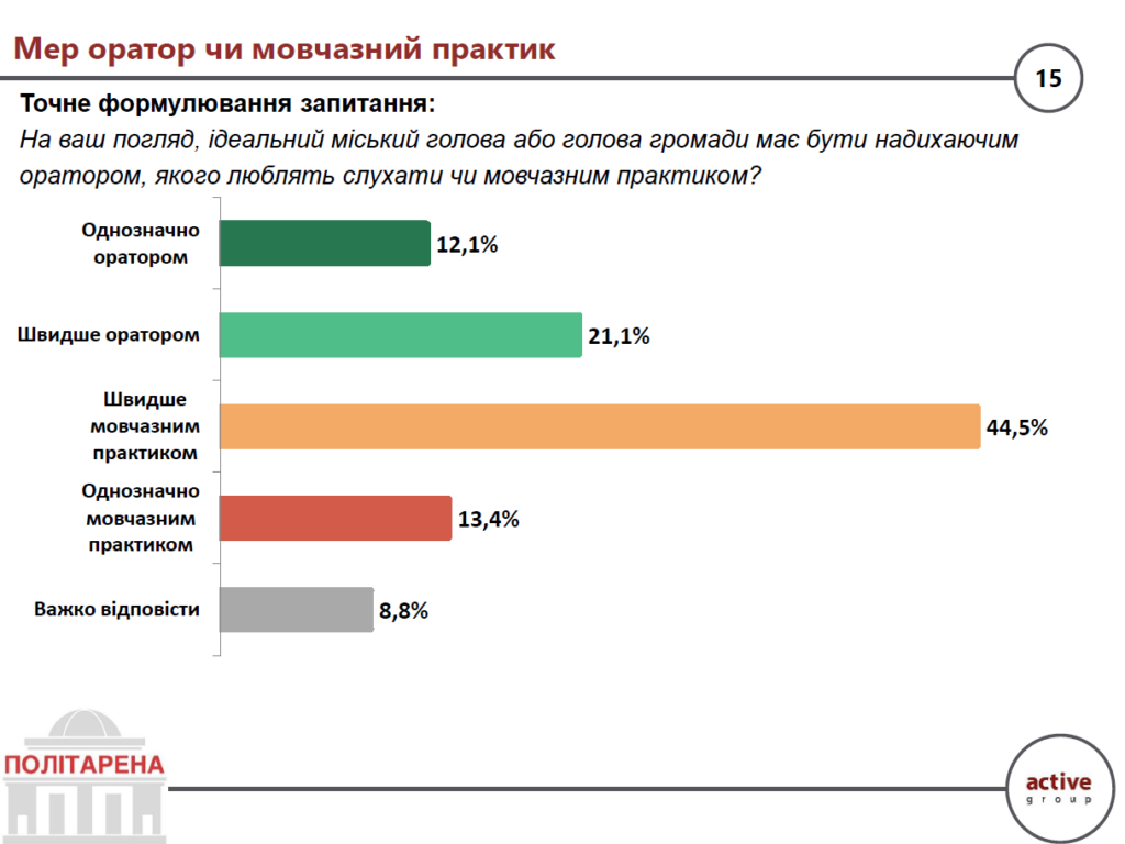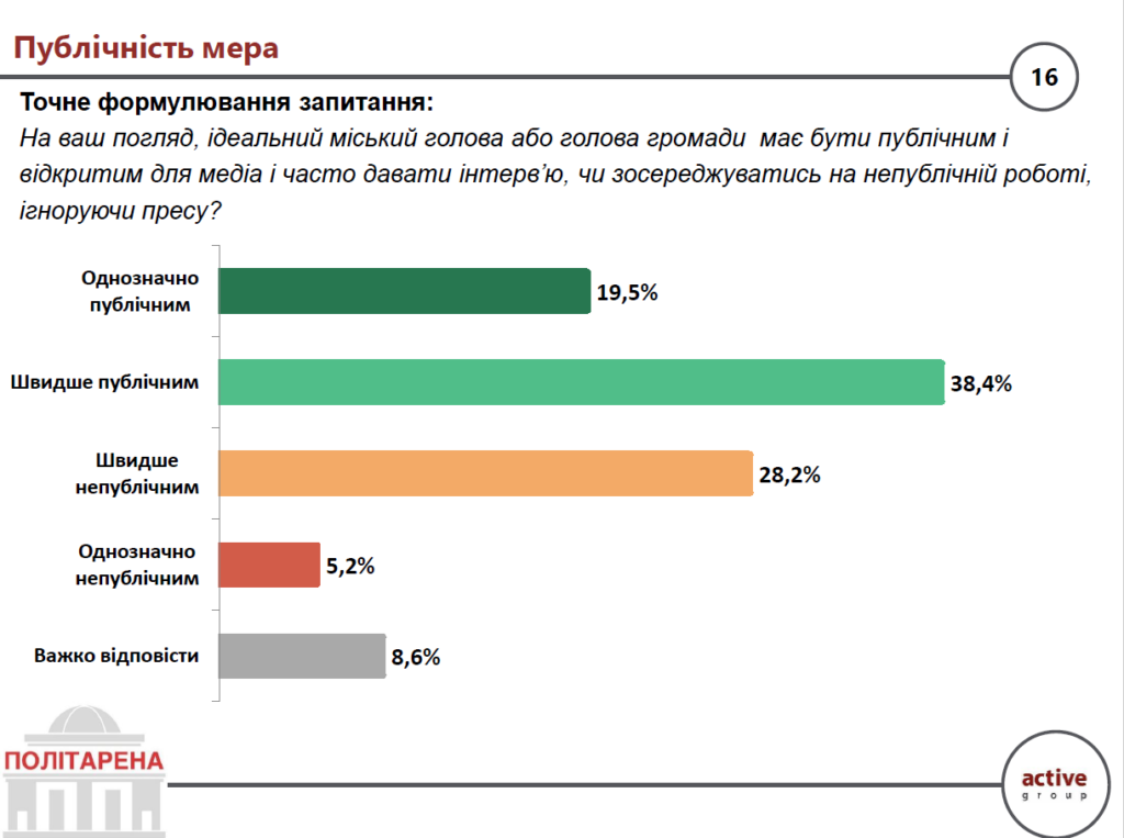 Таким чином, образ ідеального мера в уявленні українців — це поєднання раціональності, гнучкості, відкритості до людей і бездоганної репутації.