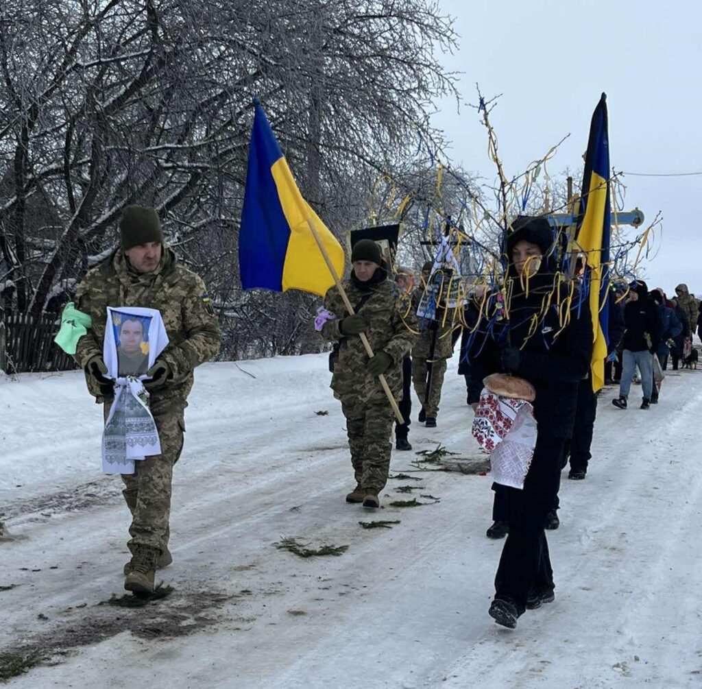 Траурний кортеж із синьо-жовтими прапорами супроводжував тіло Героя. Жителі громади зустрічали Захисника зі схиленими головами, державними прапорами та словами вдячності за службу й самопожертву.