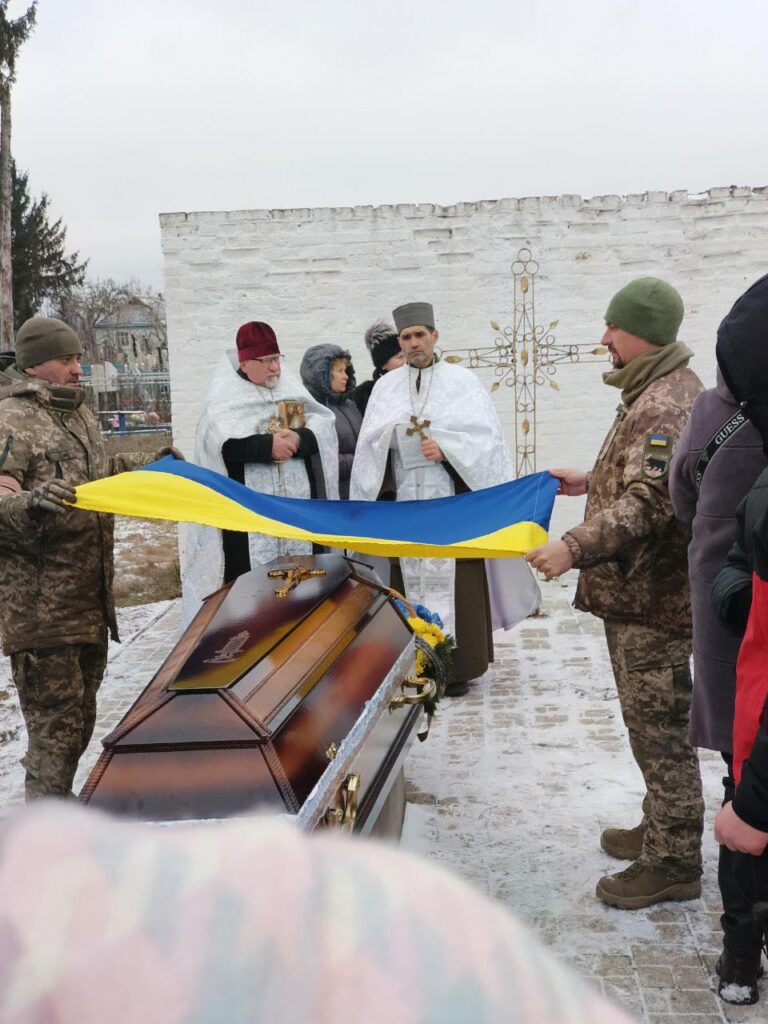 Прощання із Захисником відбулося в селі Лозівка. Дорогу від дому до храму Святих апостолів Петра і Павла встелили квітами. Заупокійне богослужіння очолив священник Вінницько-Тульчинської єпархії ПЦУ Віктор Воронко у співслужінні з військовим капеланом.