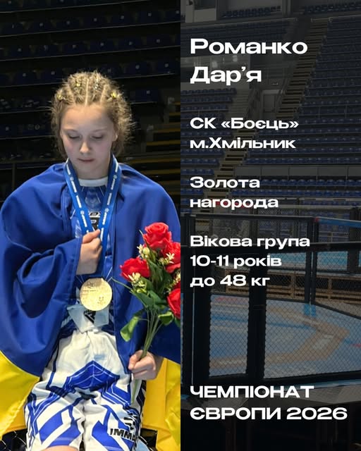 Гучна перемога українського прапора на міжнародній арені — і за нею стоїть юна спортсменка з Хмільника. Дар’я Романко довела: справжній характер і наполегливість не мають віку, коли виборола золото на Чемпіонаті Європи зі змішаних єдиноборств ММА.