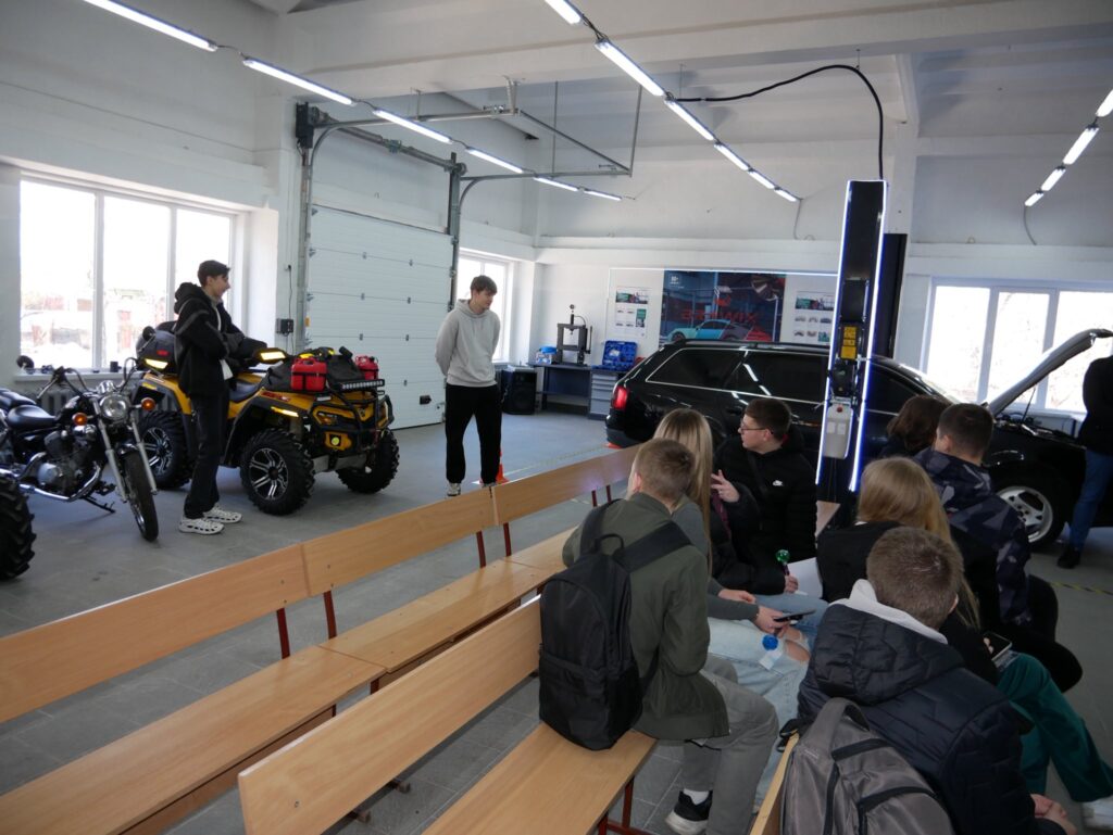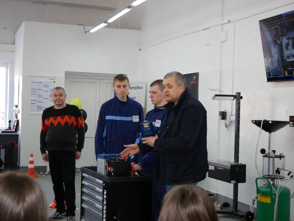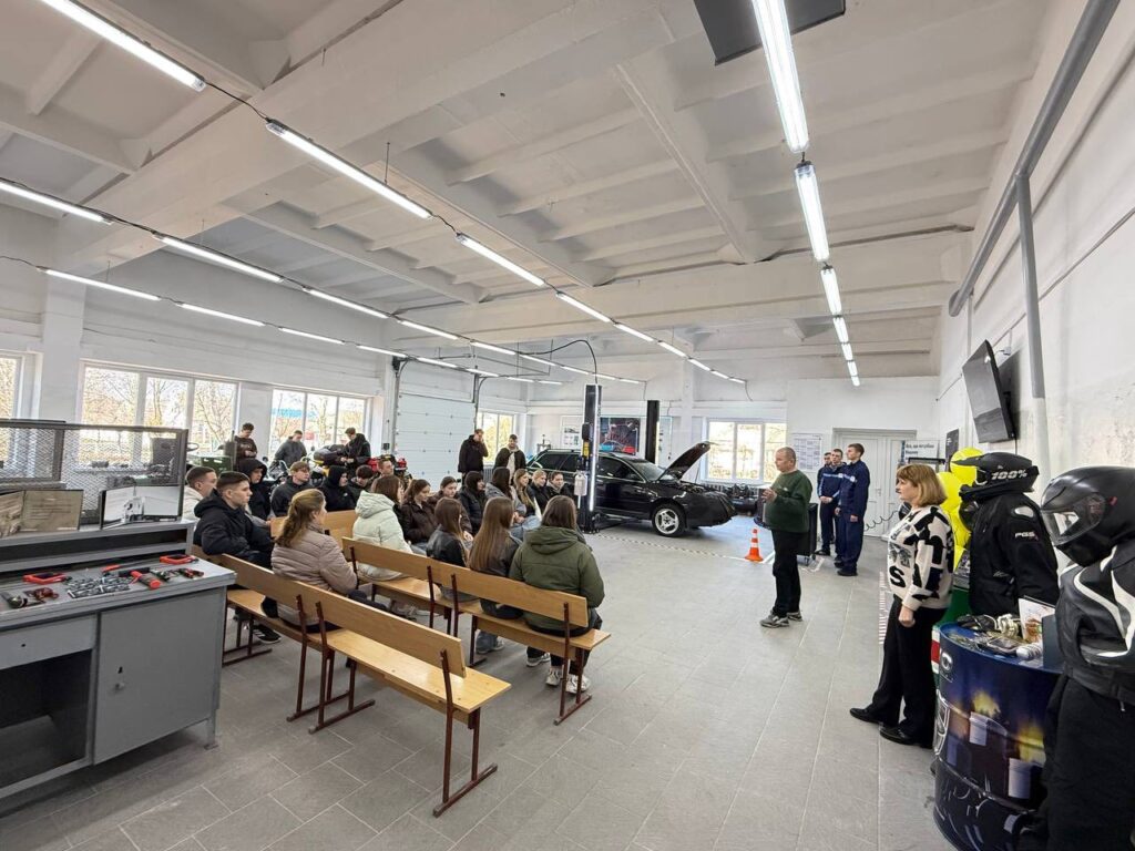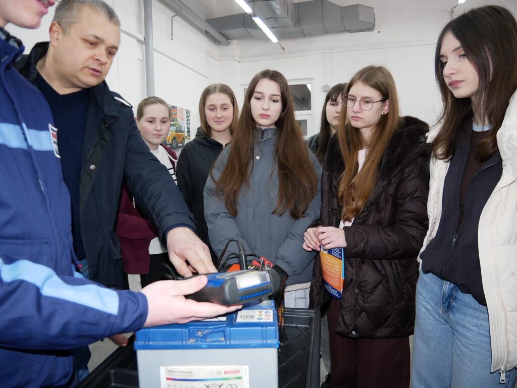 Не менш захопливими були й технічні локації. Майбутні фахівці з галузевого машинобудування та електроенергетики демонстрували роботу сучасного обладнання, проводили практичні заняття з діагностики акумуляторів, підіймання автомобіля, демонтажу коліс і контролю затягування болтів.