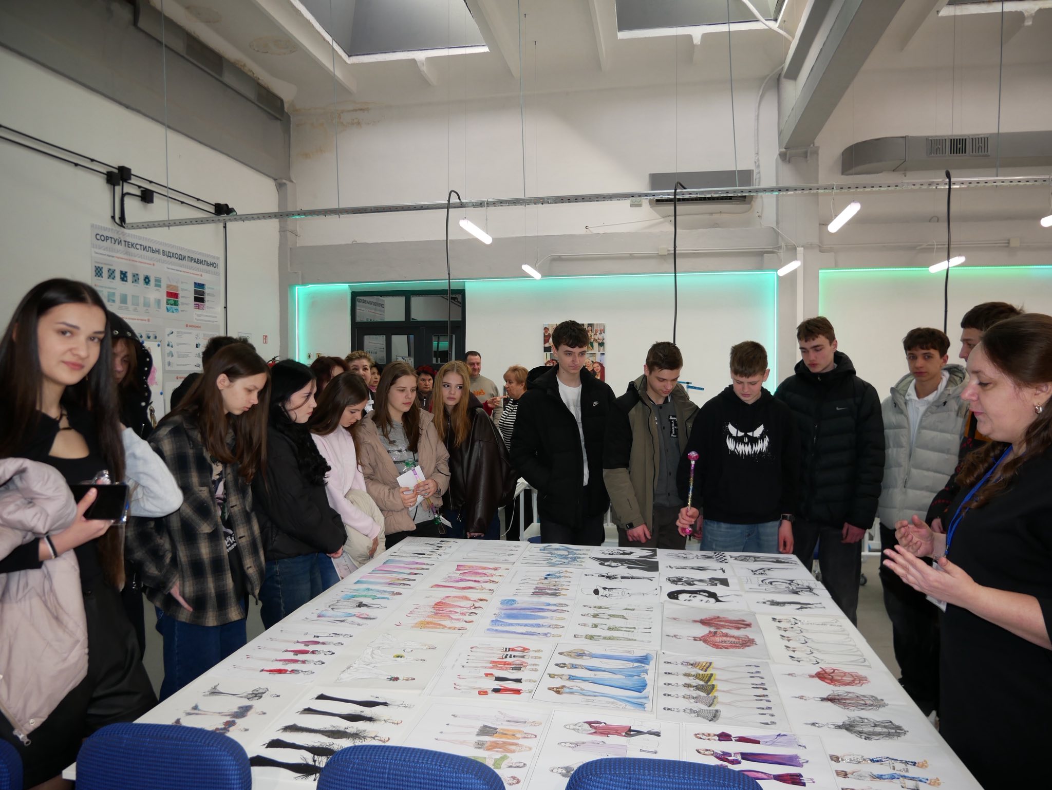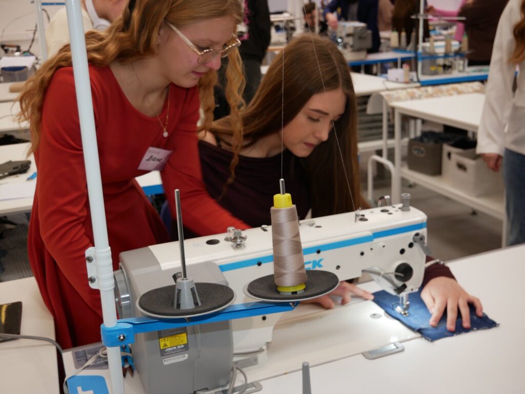 Творчий простір розгорнули студенти спеціальностей «Дизайн одягу» та «Технології легкої промисловості». Лабораторія перетворилася на справжній fashion-простір із червоною доріжкою, де учні брали участь у вікторинах, створювали власні образи та знайомилися з авторськими колекціями одягу.