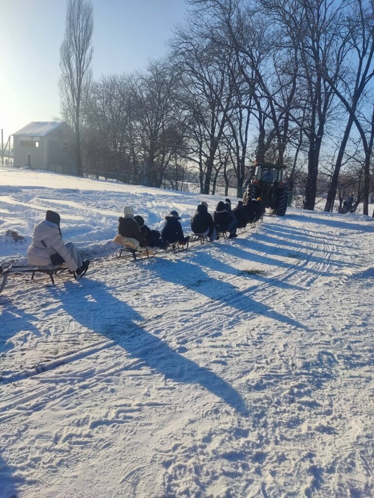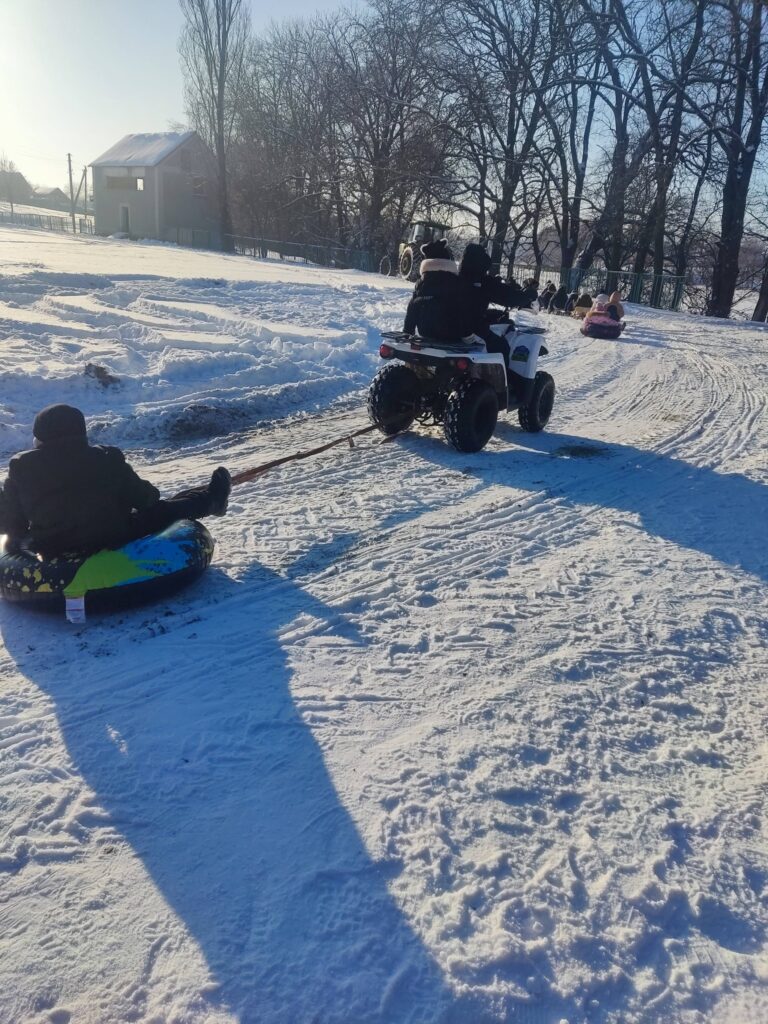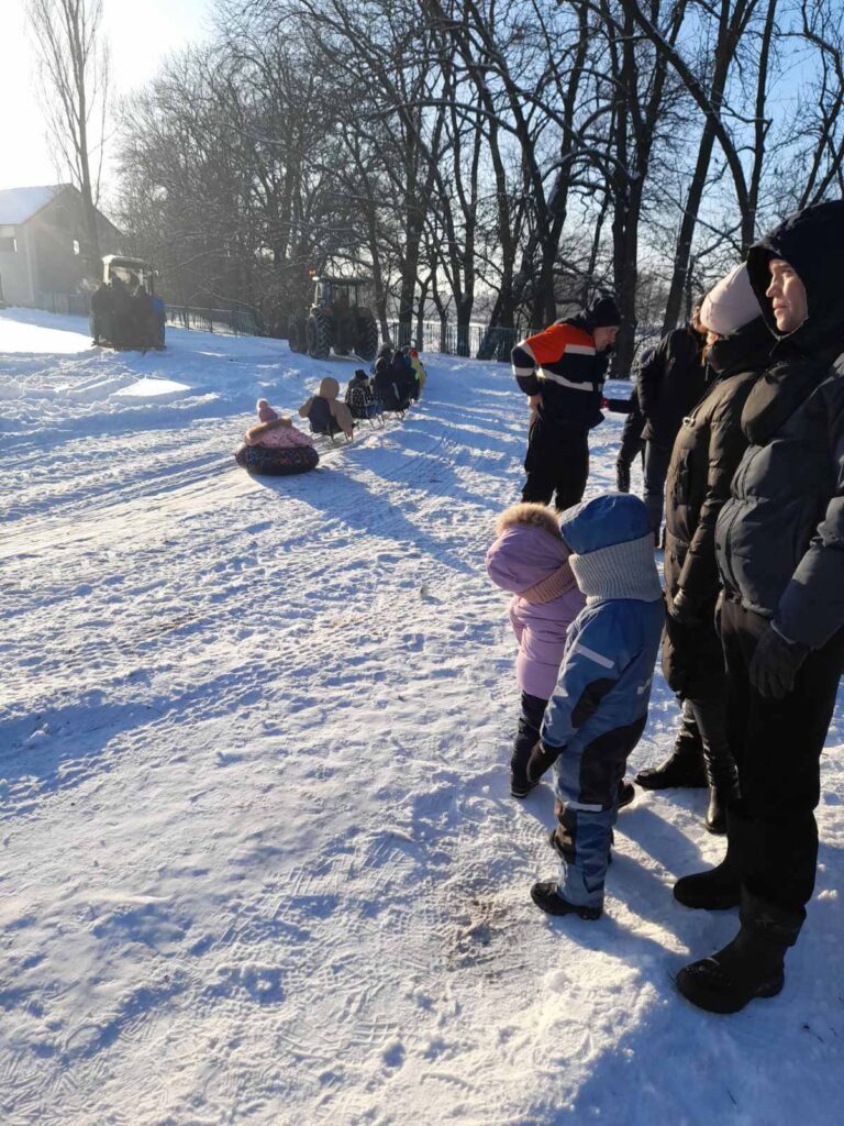 У Кордишівці Козятинської громади зима подарувала дітям справжню казку. Малеча із захопленням каталася на санчатах, «бубликах» та льодянках, які тягнув невеликий тракторець.